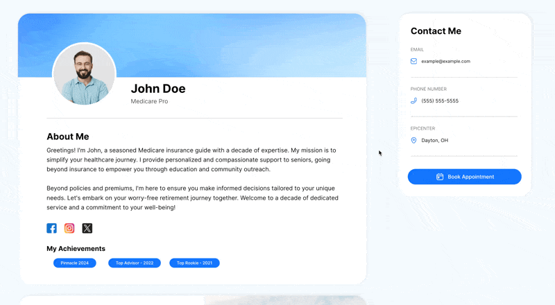 Generate a service area map automatically, reflecting the states where you're licensed, without any effort on your part. Plus, display the carriers you offer with a logo carousel, enhancing your professional image for consumers.